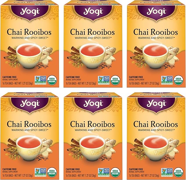 Yogi Tea Chai Rooibos Tea – 6 Packs (16 Tea Bags per Pack) | Caffeine-Free | Provides Antioxidants | Includes Cardamom, Cinnamon, Ginger & Clove | Spiced Organic Rooibos Tea