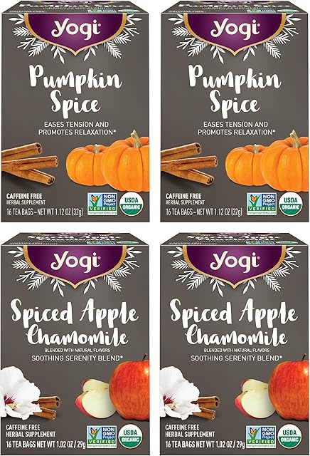 Order Yogi Tea – Fall Spice Variety Sampler Pack – 16 Tea Bags Per Pack (4 Pack) – Limited Edition Tea Sampler – Herbal Caffeine-Free Teas – Includes 2 Spiced Apple Chamomile & 2 Pumpkin Spice today for a best price.