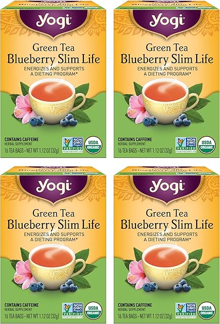 Order Yogi Tea Green Tea Blueberry Slim Life (4 Pack) 64 Organic Tea Bags | with Garcinia Cambogia | Energizes and Supports a Dieting Program | Contains Caffeine today for a best price.