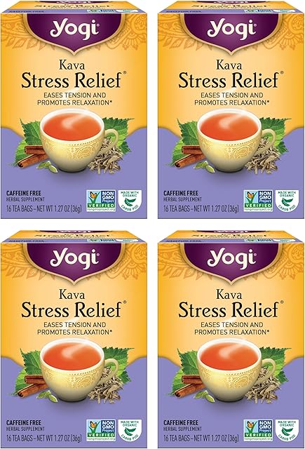 Order Yogi Tea Kava Stress Relief Tea – 16 Tea Bags per Pack (4 Packs) – Made with Organic, Caffeine-Free Relaxing Tea – Includes Carob Pod, Indian Sarsaparilla Root, Cinnamon Bark, Ginger Root & More today for a best price.