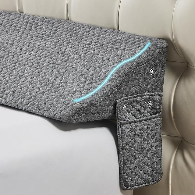 Yojoker Queen Size Bed Wedge Pillow for Headboard Gap, Wedge Pillow Headboard with Side Pockets and Wave Contour, High-Density Foam Bed Gap Filler (0-6″), 60x10x6 Inch, Gray