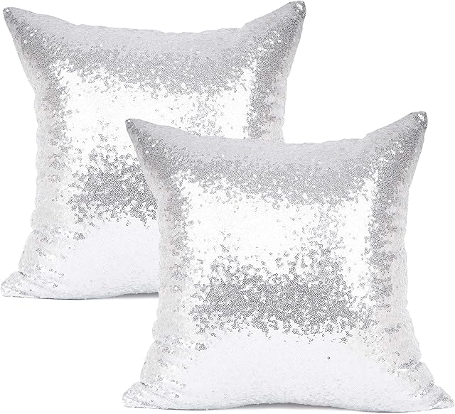 Order YOUR SMILE Pack of 2, New Luxury Series Silver Decorative Glitzy Sequin & Comfy Satin Solid Throw Pillow Cover Cushion Case for Wedding/Christmas,18″ x 18″ today for a best price.