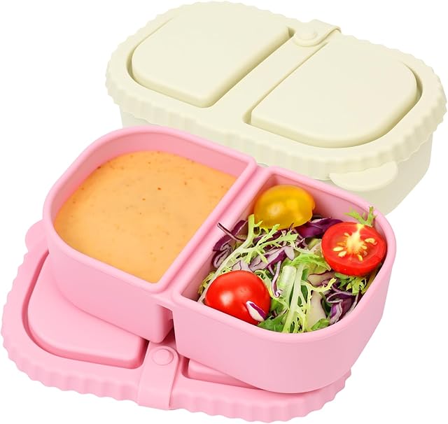 Order YQL 2 Pack Silicone Snack Containers with Lids, Double Compartment Reusable Snack Boxes for Sauce and Salad, Portable Small Food Containers, Leakproof Snackle Packs Boxes for Travel, Picnics, Office today for a best price.