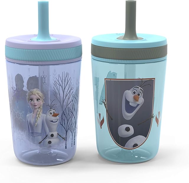 Zak Designs Disney Frozen II Movie Kelso Tumbler Set, Leak-Proof Screw-On Lid with Straw, Made of Durable Plastic and Silicone, Perfect Bundle for Kids (Frozen 2 Olaf, 15 oz, 2pc Set)