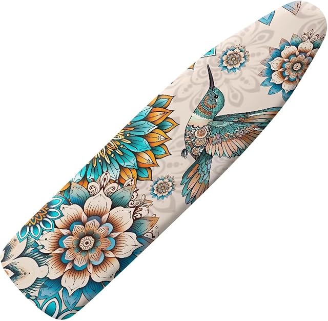 ZDCUSTOM Iron Board Dust Cover with Elastic Edges 59″ x 19.7″ Stretchy Ironing Board Cover Replacement Boho Flower Hummingbird Print