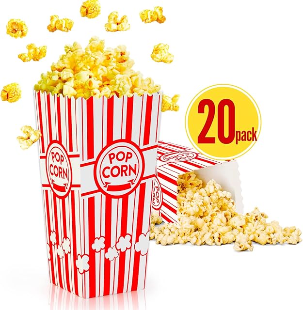 Order ZEEGO0 20-Pack Popcorn Boxes, Sturdy and Durable Popcorn Bucket, 7.75in Tall Large Capacity Popcorn Containers, Cups & Bowls, Convenient Movie Night Supplies, Perfect for Families, Parties, Carnivals today for a best price.