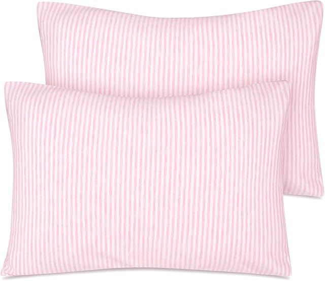 Zenssia Organic Cotton Toddler Pillowcase/Travel Pillowcase Pack of 2 Set 13×18 Inches with Envelope Closure – Soft & Breathable Baby Pillow Case Cover Pink Stripe