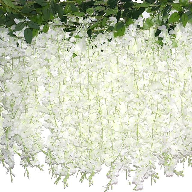 ZINHO 60 Branches Wisteria Hanging Flowers, Artificial White Wisteria Flowers Garland for Wedding Arch Ceremony Party Garden Home Backdrop Decor