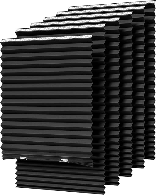 Zipcase 6 Pack Window Blackout Shades, 100% Shading Cordless Light Filtering Pleated Paper Shades, 36 in x 72 in(Fits Windows 19?- 36?), Black