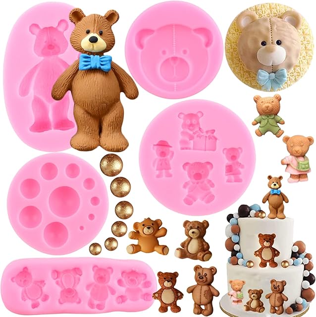 Zixiang 3D Pearl Fondant Mold Bear Silicone Fondant Mold Ball Pearl Semi Sphere Chocolate Molds For Teddy Bear Cake Decorating Cupcake Topper Candy Lollipop Polymer Clay Gum Paste Set Of 5