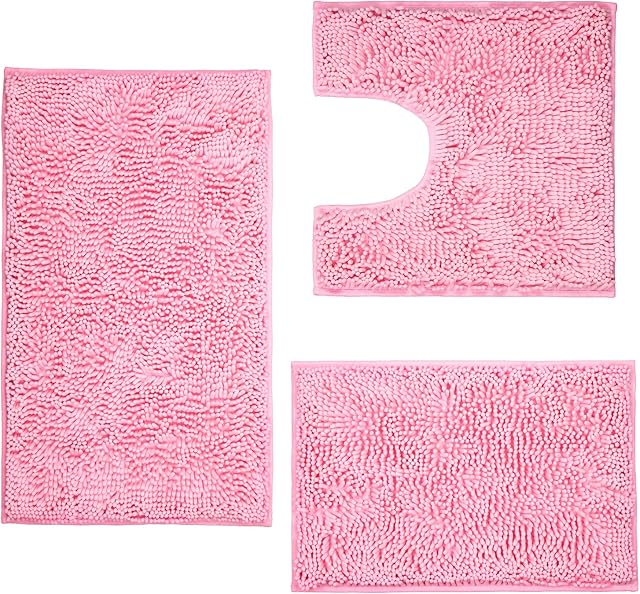 ZiYiJuan Bathroom Rugs, Super Absorbent Luxury Shaggy Chenille Bath Mats, Pink 20x20_17x24_20x32