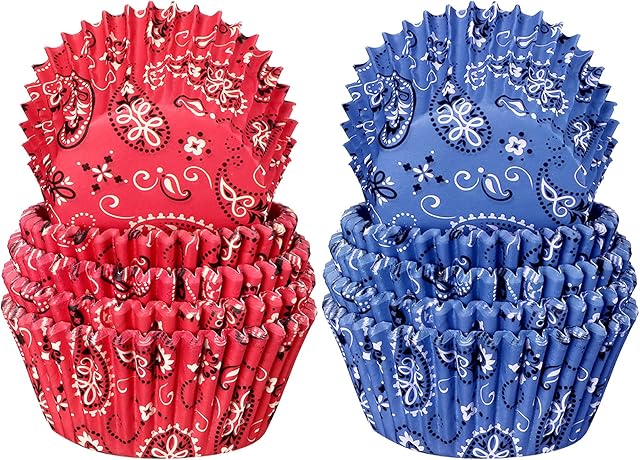Zonon 200 Pieces Western Cowboy Cupcake Liners Red Blue Bandana Cupcake Wrappers Western Cowboy Birthday Party Supplies for Wedding Holiday Birthday Party Decorations