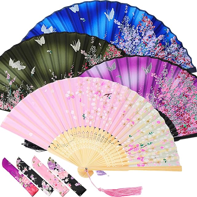 Order Zonon 4 Pack Handheld Floral Folding Fans Hand Held Silk Bamboo Fans with Tassel Women Hollowed Hand Foldable Fan with Fabric Sleeve for Dancing Wedding Decoration Gifts(Lively) today for a best price.