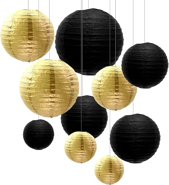 Order ZOOYOO 10pcs Paper Lanterns,Black Gold Round Hanging Paper Lanterns Decorations for Graduation,Anniversary,New Year,Farewell,Retirement,Birthday Party,Graden Decor today for a best price.