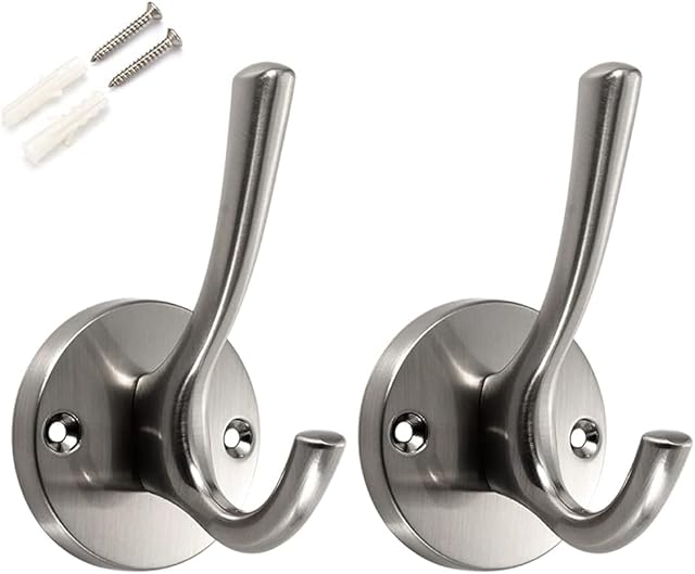 ZUONAI Coat Hooks Double Wall Hanger 2 Pack Metal Brushed Nickel for Wall
