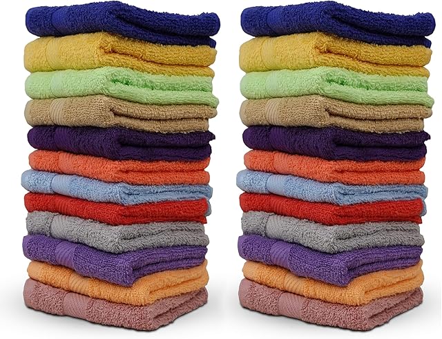 ZUPERIA 100% Cotton Bath Wash Cloths 24 Pack – 12″ x 12″- Highly Absorbent Soft Washcloths for Face, Gym Towels, Hotel Spa Quality, Reusable Multipurpose (Dark, Light & Bright Colors)